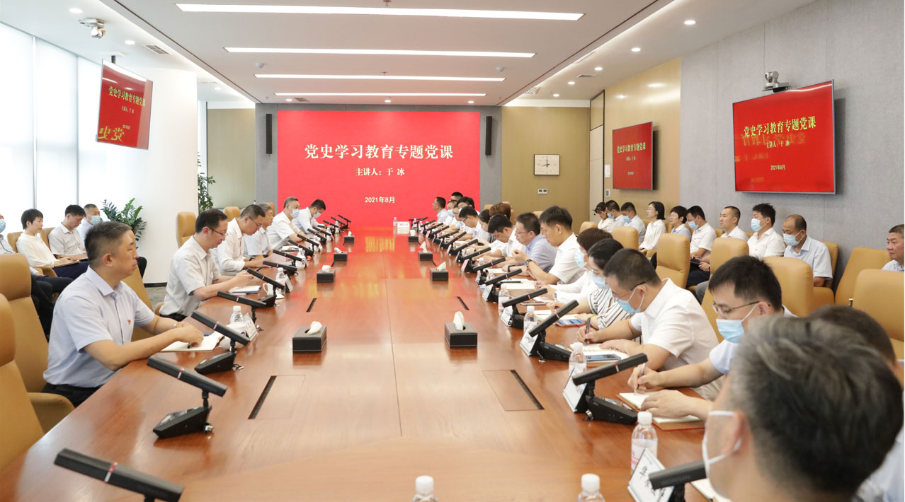 凭证党史学习教育事情安排,,8月11日,,集团公司副总司理,,公司党委书记、董事长,,党史学习教育向导小组组长于冰以《回望历史 罗致实力 擘画未来 奋力开创山东尊龙凯时高质量生长新时势》为题,,为党员干部教学党史学习教育专题党课。。